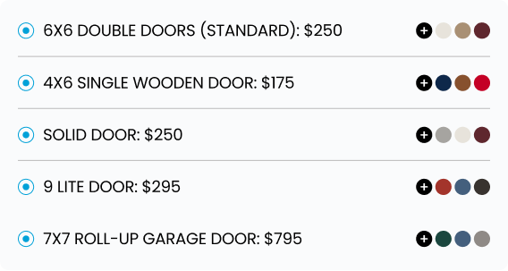 (For customers upgrading to TW, they can choose between TW 9 Lite, TW Solid, or 6×6 Double Doors. If selecting 7×7 Double Doors, an additional $75 applies.)